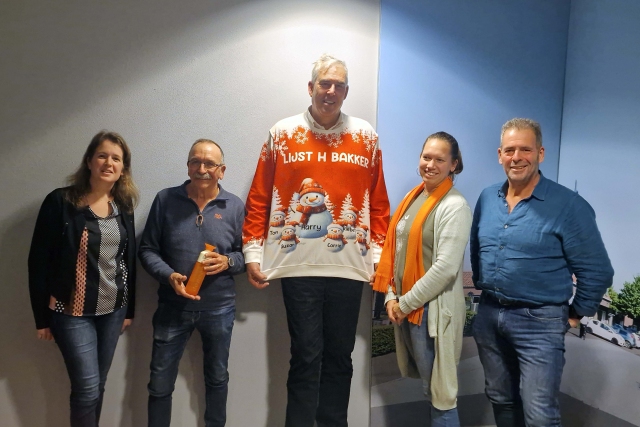 Onderschrift foto: Wethouder Harry Bakker in kersttrui met een deel van de fractie.
